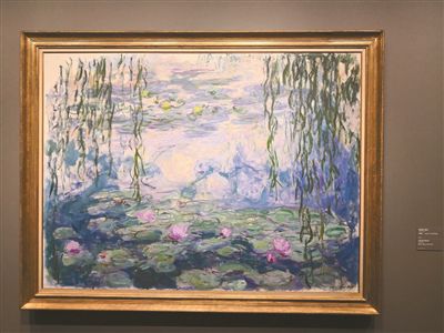 展览中的巨幅《玫瑰》创作于1925至1926年,是一件未完成的感人作品。像这样的作品,在莫奈创作生涯的最后几年有不少。尽管未完成,人们依然能够真真切切地感受到莫奈的力量与温柔。注视着画上朵朵绽放的玫瑰,让人不由得感到,大师仿佛刚刚放下画笔,转身离开。