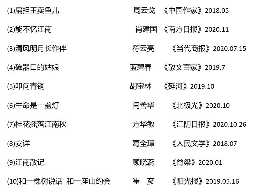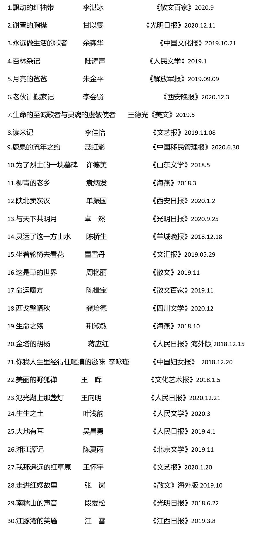 第九届冰心散文奖评审委员会组织专家评委经过认真阅读讨论,于2021年4月经过初评、复评、审核终评三个阶段,分别投票表决产生了第九届冰心散文奖散文集奖和散文单篇奖及提名奖的获奖作品,现将获奖作品名单予以公示。