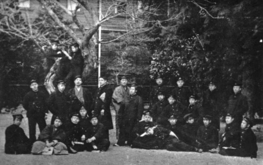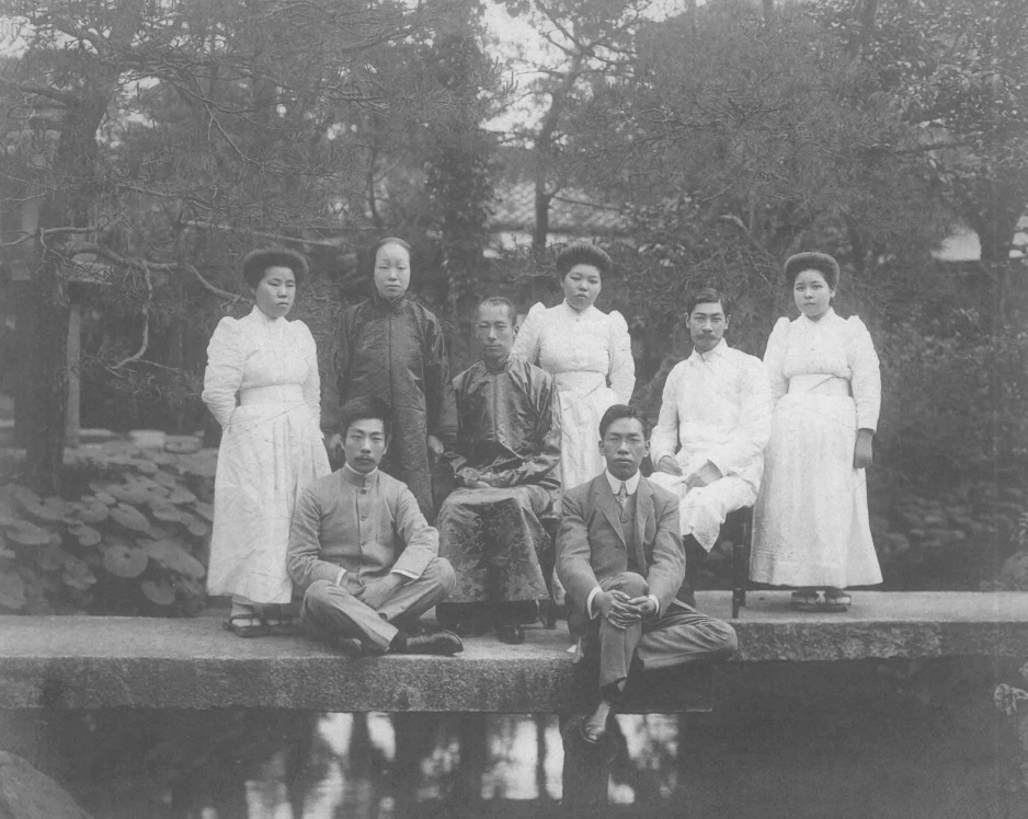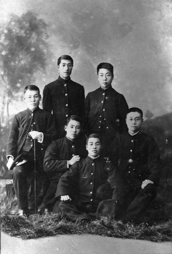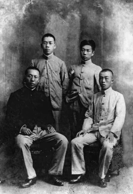 1903年摄于东京,时鲁迅在弘文学院。照片上其他三人均为绍兴人。与鲁迅并排而立者许寿裳,弘文学院浙江班学生;许寿裳前面坐者邵明之,东京清华预备学校学生,后往北海道札幌地方工业专门学校学习土木工程;鲁迅之前为陈仪,日本成城学校学生,后就读于日本陆军大学,曾任台湾省行政长官兼台湾省警备总司令部总司令、浙江省省长。