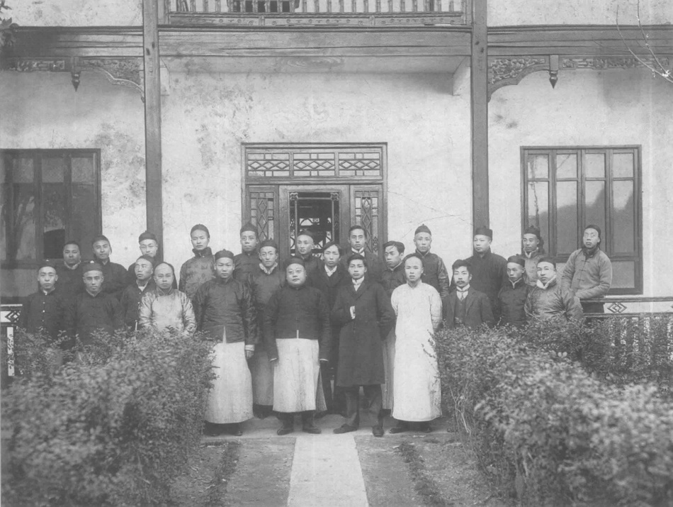 1910年1月10日摄于杭州。许寿裳、鲁迅回国后受沈钧儒邀请,到浙江两级师范学堂任教。沈离任后,夏震武继任。夏思想顽固、妄自尊大,被称为“夏木瓜”,后被许寿裳、鲁迅驱逐,戏称“木瓜之役”。图片为“木瓜之役”胜利后的合影。前排左起第八人为鲁迅,后排左起第十一人为许寿裳。
