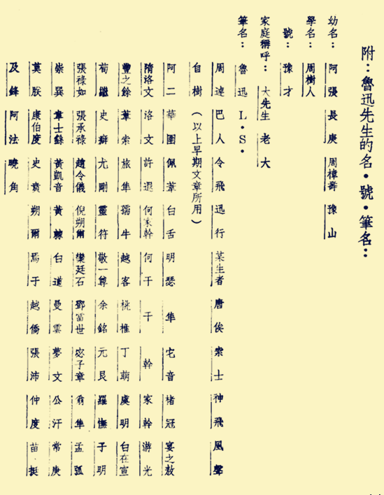 附一:鲁迅笔名别册