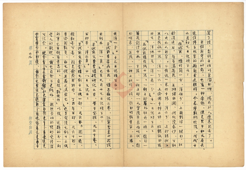 在中国现代文学馆手稿库中,收藏有一部1962年11月30日周作人在北京苦雨斋创作完成的名为《知堂回想录》(又名《周作人回忆录》)手稿档案。《知堂回想录》是周作人晚年回顾自己一生重要经历的档案,其内容极为丰富,是研究中国现代文学史的一部重要资料。在该稿的创作中,周作人极为细致,其修改的地方并不多。但其中有一页周作人则做了明显删除。在《知堂回想录》手稿的第四九页(第一卷 二二 “县考的杂碎 续”),周作人将最后一句“现今写《十二金钱镖》的天津宫白羽先生,在他还是姓宫竹心的时候,我们也曾经见过,回忆起来已是四十年前的事了。”全部毛笔划去。