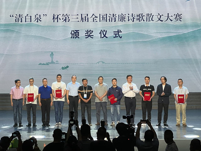 9月24至25日,由《诗刊》社、光明日报文艺部指导,绍兴市纪委市监委、绍兴市委宣传部主办,中国诗歌网、《反腐败导刊》杂志社、浙江文艺出版社承办的第三届“清白泉”杯全国清廉诗歌散文大赛举行了颁奖仪式。