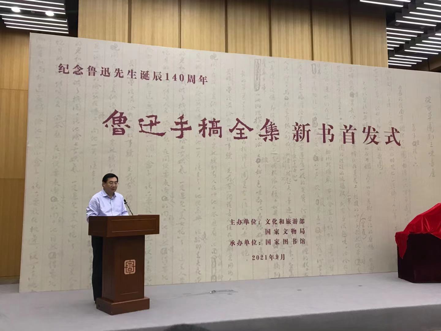 文化和旅游部党组书记、部长,《鲁迅手稿全集》编辑委员会主任胡和平在新书首发式上