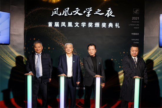 颁奖典礼最后,中国作协副主席李敬泽、中国作家协会书记处书记邱华栋、凤凰集团董事长梁勇、凤凰出版传媒股份有限公司总经理佘江涛联手启动第二届凤凰文学奖。