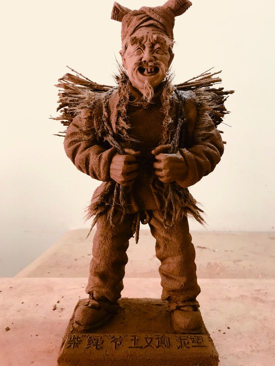 “柴”“绳”“爷”(泥塑) 王文瑜 作