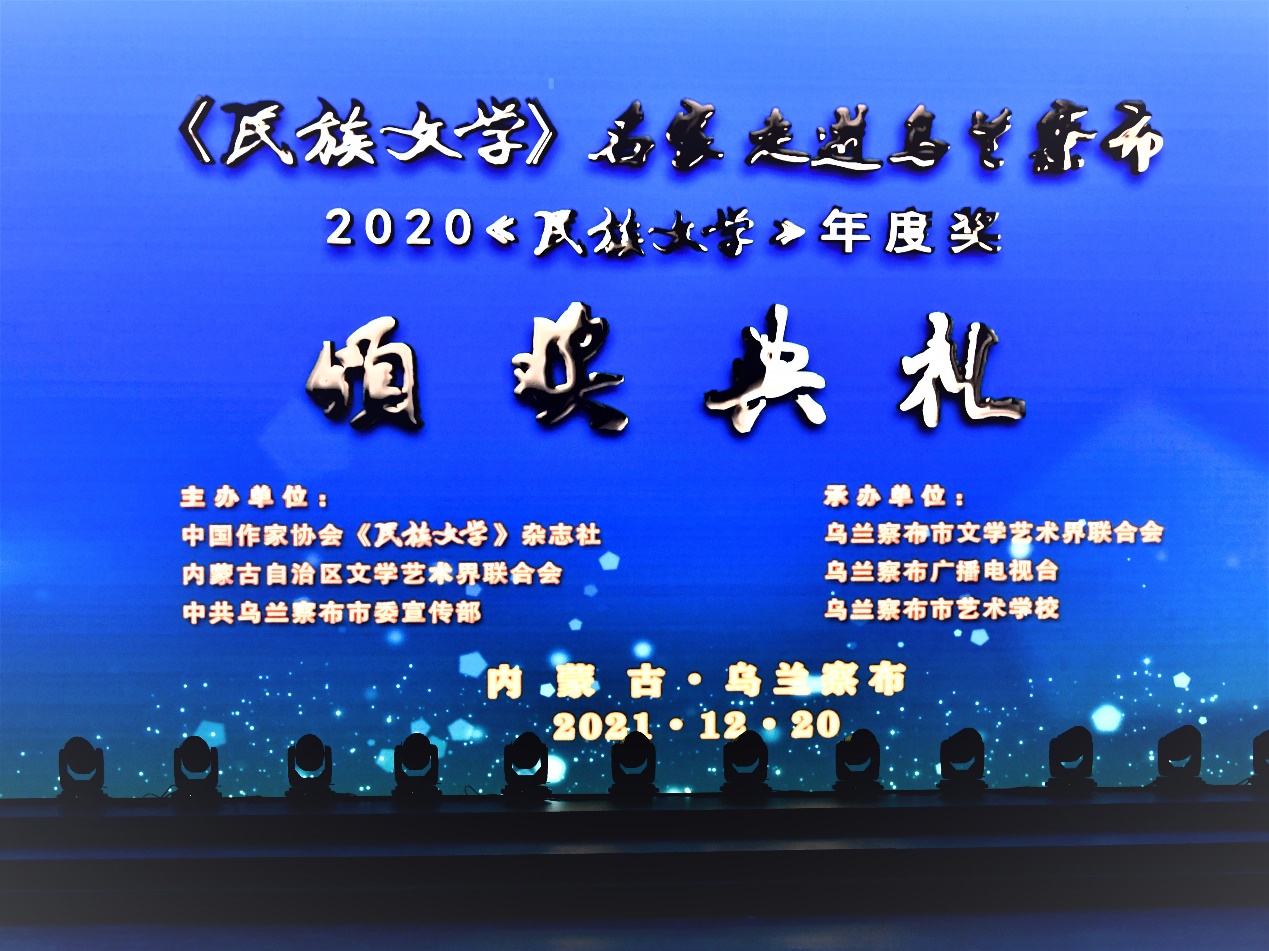 12月19日至22日,“建党百年谱华章——《民族文学》名家走进乌兰察布”暨2020《民族文学》年度颁奖典礼在内蒙古自治区乌兰察布市举行。本次活动由《民族文学》杂志社、内蒙古自治区文联、中共乌兰察布市委宣传部联合主办,乌兰察布市文联、乌兰察布市广播电视台、乌兰察布市艺校联合承办。《民族文学》主编石一宁,辽宁省作协党组书记、主席滕贞甫,《民族文学》副主编陈亚军,内蒙古自治区文联党组成员、副主席闫艳;中共乌兰察布市委常委、宣传部部长岳艳美,市人大常委会副主任李洁,副市长方泽,市文联党组书记、主席温欣华等出席活动。《民族文学》乌兰察布创阅中心授牌仪式和赠书仪式也同时举行。