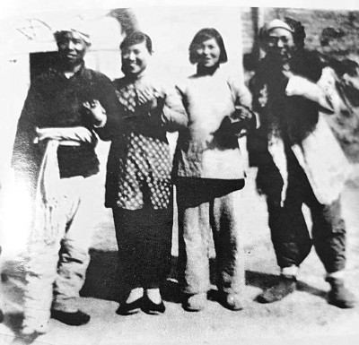 1943年延安枣园文工团演出秧歌剧《动员起来》演员化装照。图片为资料照片