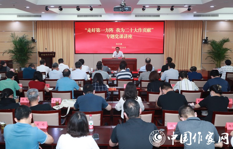 在“走好第一方阵 我为二十大作贡献”的专题党课上,张宏森以《走好第一方阵 绽放文学风采 以实际行动迎接服务党的二十大胜利召开》为题,对作协党员干部如何“走好第一方阵”进行深刻阐释,提出明确要求。张宏森指出,今年,我们党将召开二十大,这是在进入全面建设社会主义现代化国家、向第二个百年奋斗目标进军新征程上又一个重要的里程碑。迎接服务党的二十大和学习贯彻党的二十大精神,是今年党和国家政治生活中的头等大事,也是全党工作的主线。中国作协作为贯彻落实党的文艺路线方针政策、作为贯彻落实习近平总书记关于文艺工作重要论述和指示批示精神的“第一棒”,是具有鲜明政治属性的人民团体,是践行“两个维护”的第一方阵。我们要按照党中央要求,不断提高政治能力、加强政治历练,把政治判断力、政治领悟力、政治执行力体现到履职尽责的实际行动上,不断增强作协组织政治性、先进性、群众性,扎扎实实走好践行“两个维护”和贯彻落实党中央决策部署的“最先一公里”,努力营造平稳健康的经济环境、国泰民安的社会环境、风清气正的政治环境,为党的二十大胜利召开贡献文学力量。