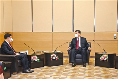 丁薛祥、许其亮、沈跃跃、王毅、夏宝龙参加有关会见。