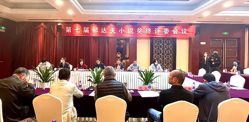 由于疫情防控等原因,部分评委无法抵达现场,本次会议采取线上线下相结合的方式进行。终评委仍由著名作家、学者和重要文学刊物主编组成,主任为李敬泽,副主任为艾伟,八名成员(按姓氏笔画顺序)为叶兆言、毕飞宇、孙甘露、李洱、阿来、陈东捷、袁敏、程永新。经过两个月的审读,终评委在现场讨论通过了《第七届郁达夫小说奖获奖作品投票产生办法》,并就终评备选的作品发表审读意见,展开实名投票决选,选出最终结果。
