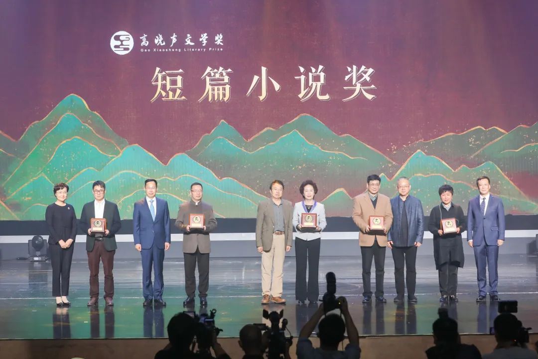 丁帆、周斌、汪忠泽、舒文、沈月芬向短篇小说奖获奖者颁奖