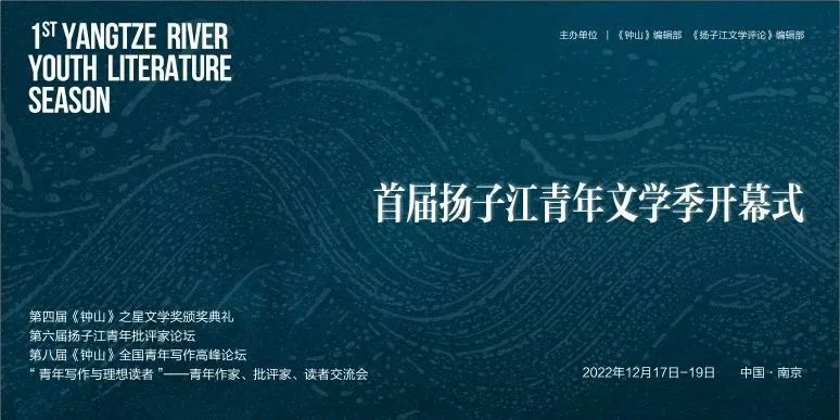 2022年12月17日晚,首届扬子江青年文学季开幕式暨第四届“《钟山》之星”文学奖颁奖典礼在南京举行。江苏省作协党组书记、书记处第一书记、常务副主席汪兴国,省作协党组成员、书记处书记、副主席、《钟山》主编、《扬子江文学评论》主编贾梦玮,省作协副主席胡学文,江苏省委宣传部文艺处处长高民,江苏凤凰文艺出版社社长张在健,以及获奖作家,第八届全国青年写作高峰论坛、第六届扬子江青年批评家论坛与会作家、批评家,“《钟山》2022读者年”年度优秀读者代表出席了开幕式及颁奖典礼。