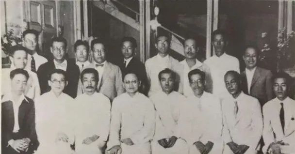 1930年8月,郁达夫(前左二)与鲁迅(前左三)在上海应内山完造(后右一)邀请参加文艺漫谈会