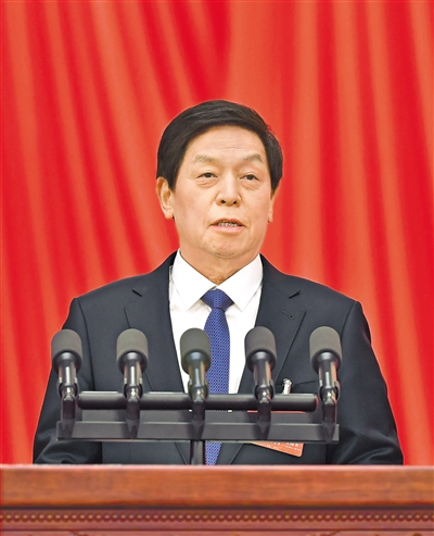3月7日,十四届全国人大一次会议在北京人民大会堂举行第二次全体会议。受十三届全国人大常委会委托,栗战书委员长向大会报告全国人大常委会工作。 新华社记者 李 涛摄
