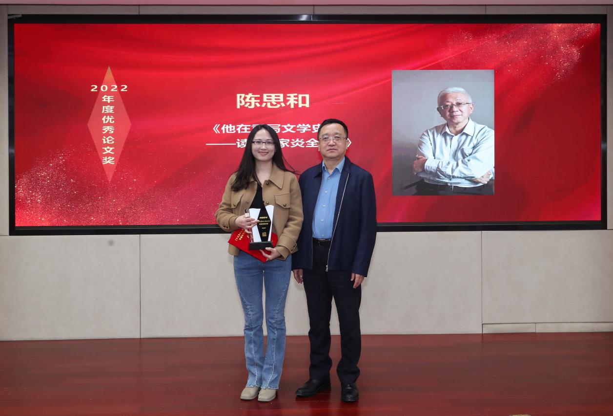 全国政协文史委副主任、中国作协副主席阎晶明为获奖者陈思和(钟媛代领)颁奖