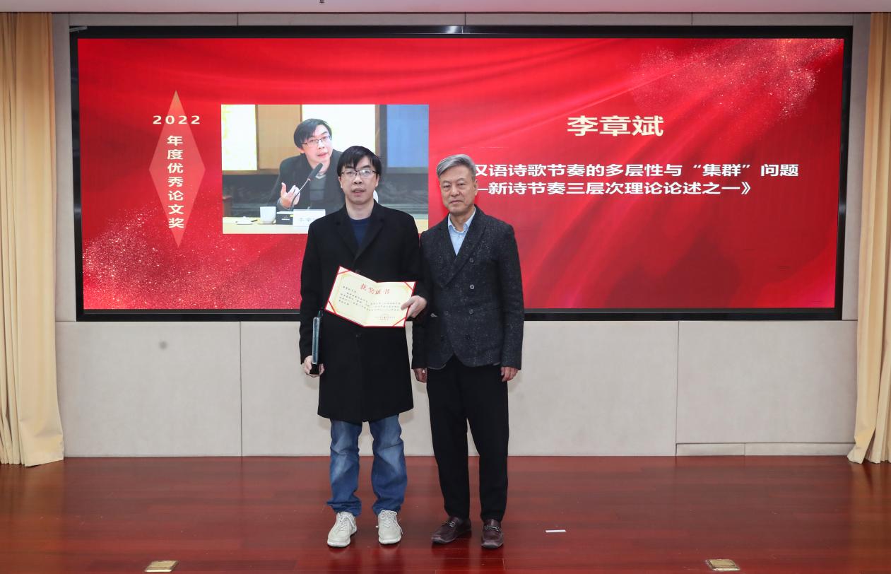 会议首先进行了《中国当代文学研究》2022年度优秀论文颁奖仪式。自2019年创刊以来,《中国当代文学研究》深耕当代文学批评、理论及文学史研究等领域,不断激励学人积极介入当代文学现场,推动当代文学发展。在日常遴选推优的基础上,《中国当代文学研究》特别设置了年度优秀论文奖,鼓励和培养当代文学研究人才。经过责任编辑推荐和评审专家投票,评定孙郁的《从京派到新京派》(2022年第6期)、陈思和的《他在重写文学史——读<严家炎全集>》(2022年第1期)、黄发有的《网络文学研究的反思与突破》(2022年第4期)、李章斌的《汉语诗歌节奏的多层性与“集群”问题——新诗节奏三层次理论论述之一》(2022年第2期)、王春林的《如梦如幻如泡影,如露亦如电——关于贾平凹长篇笔记小说<秦岭记>》(2022年第6期)、范玉刚的《在双重视野融合中洞察〈讲话〉的问题性——纪念毛泽东<在延安文艺座谈会上的讲话>发表80周年》(2022年第4期)、傅逸尘的《最后的先锋:猜想孙甘露——从<呼吸>到<千里江山图>》(2022年第6期)7篇论文获得2022年度优秀论文奖。颁奖会上,评委会主任阎晶眀宣读授奖词,并与吴义勤、施战军、梁鸿鹰、路英勇、白烨、陈汉萍等为获奖者颁奖。孙郁作为获奖代表发言。