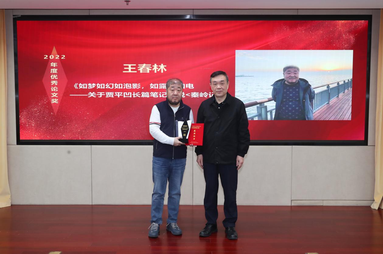 作家出版社社长路英勇为获奖者王春林颁奖