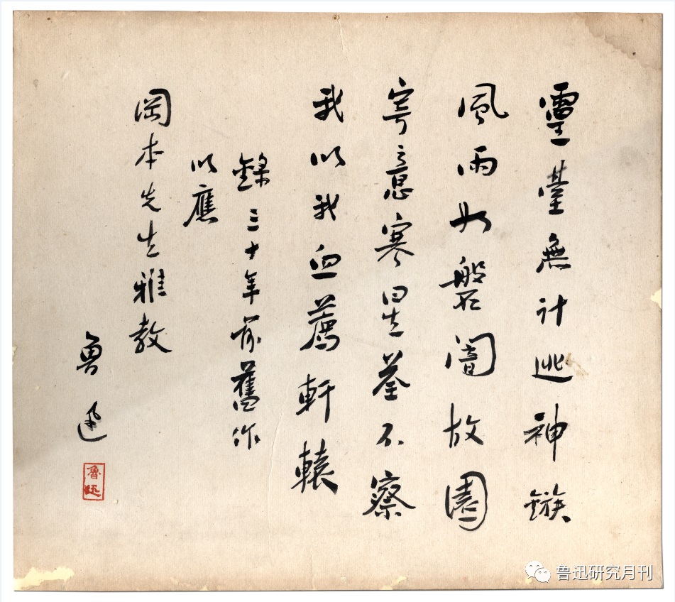 1932年,鲁迅赠冈本繁(“自题小像”),北京鲁迅博物馆藏