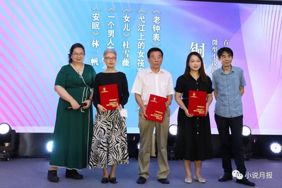 7月25日上午,“微观看世界”——首届全球华人微型小说创作大赛颁奖典礼在临沂高新区龙湖软件园举行。本次颁奖活动由百花文艺出版社、中国微型小说学会主办,临沂高新区管委会、《微型小说月报》编辑部承办,山东临沂新华印刷物流集团有限责任公司、山东广和裕丰纸业有限公司支持。百花文艺出版社总编辑、《小说月报》《散文》《微型小说月报》主编汪惠仁,中国微型小说学会副会长、百花洲文艺出版社副总编辑、《微型小说选刊》主编张越,中国微型小说学会秘书长、《故事会》杂志社副主编高健,作家康弘,湖南师范大学文学院写作学学科带头人李作霖,鲁东大学张炜文学研究院院务管委会主任瓦当,南开大学文学院教授卢桢,华东师范大学副教授项静,上海大学中文系讲师、硕士导师汪雨萌,广东省和惠州市小小说学会会长申平,东北小小说创作基地主任袁炳发,江苏省作家协会小小说委员会常务副主任相裕亭,获奖作家代表李海燕、寇建斌、安石榴、曾颖、杜雪薇、张敏珺、白禾等齐聚一堂,共同见证这一文学盛事。临沂高新区党工委副书记、管委会副主任王家兴,临沂市作家协会主席张岚以及临沂市委宣传部、市文联、市教育局、市市场监督管理局、市文化和旅游局的相关领导出席颁奖典礼。