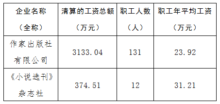 2022年中国作家协会所监管企业工资总额信息披露