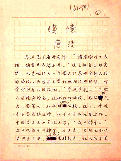 我在中学时就曾学过《琐忆》这篇文章,时隔多年,再次邂逅《琐忆》,却是在中国现代文学馆馆藏珍品中看到唐弢的手书原稿。伴随着少年时的记忆,我再次重读了收录在高中课本上的经典文章。虽然手稿上布满修改和圈涂的痕迹,细细辨认,慢慢读来,却也有一番久别重逢的亲切感。那随处可见的涂抹圈画和比比皆是的修改笔迹,让我在感受到作者字斟句酌、精益求精的严谨之余,倒是比少年时更读懂了作者的良苦用心和他对鲁迅先生的深切怀念之情。【详细】