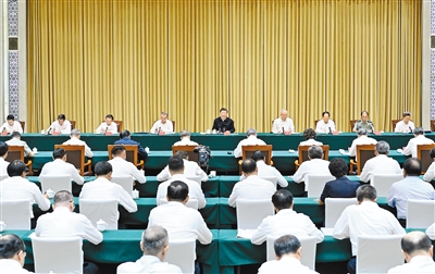 中共中央政治局常委、中央办公厅主任蔡奇出席汇报会。