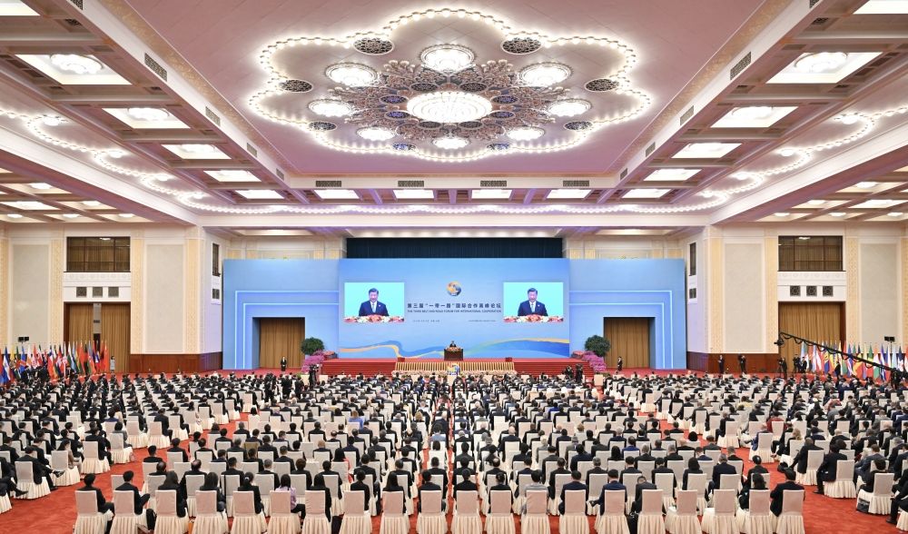 10月18日上午,国家主席习近平在北京人民大会堂出席第三届“一带一路”国际合作高峰论坛开幕式并发表题为《建设开放包容、互联互通、共同发展的世界》的主旨演讲。新华社记者 岳月伟 摄