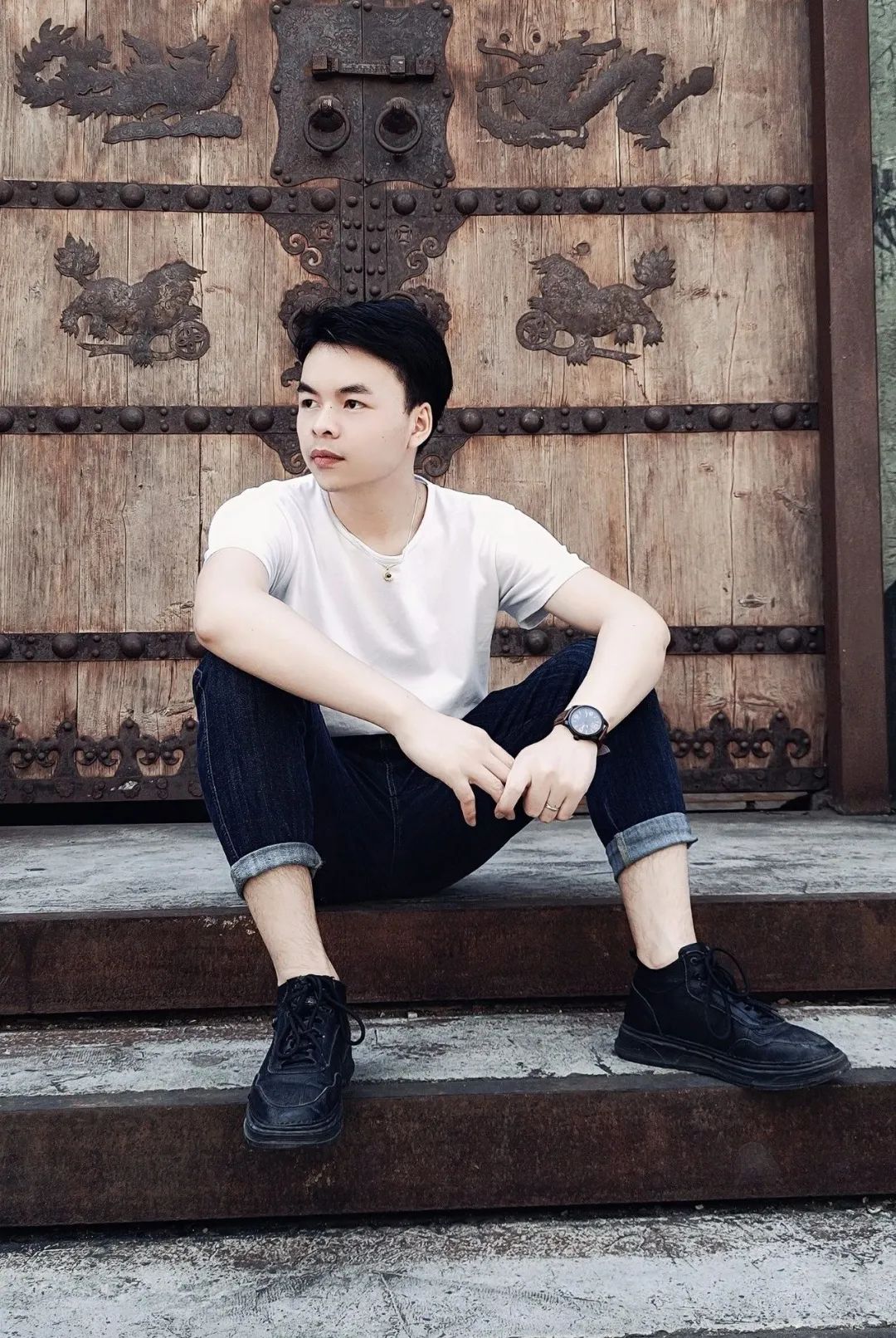 冒着浓雾在山间行走,M在台阶前停下,拾起一枚钉状物。漂亮的石头,他说,五千年前的牙齿。