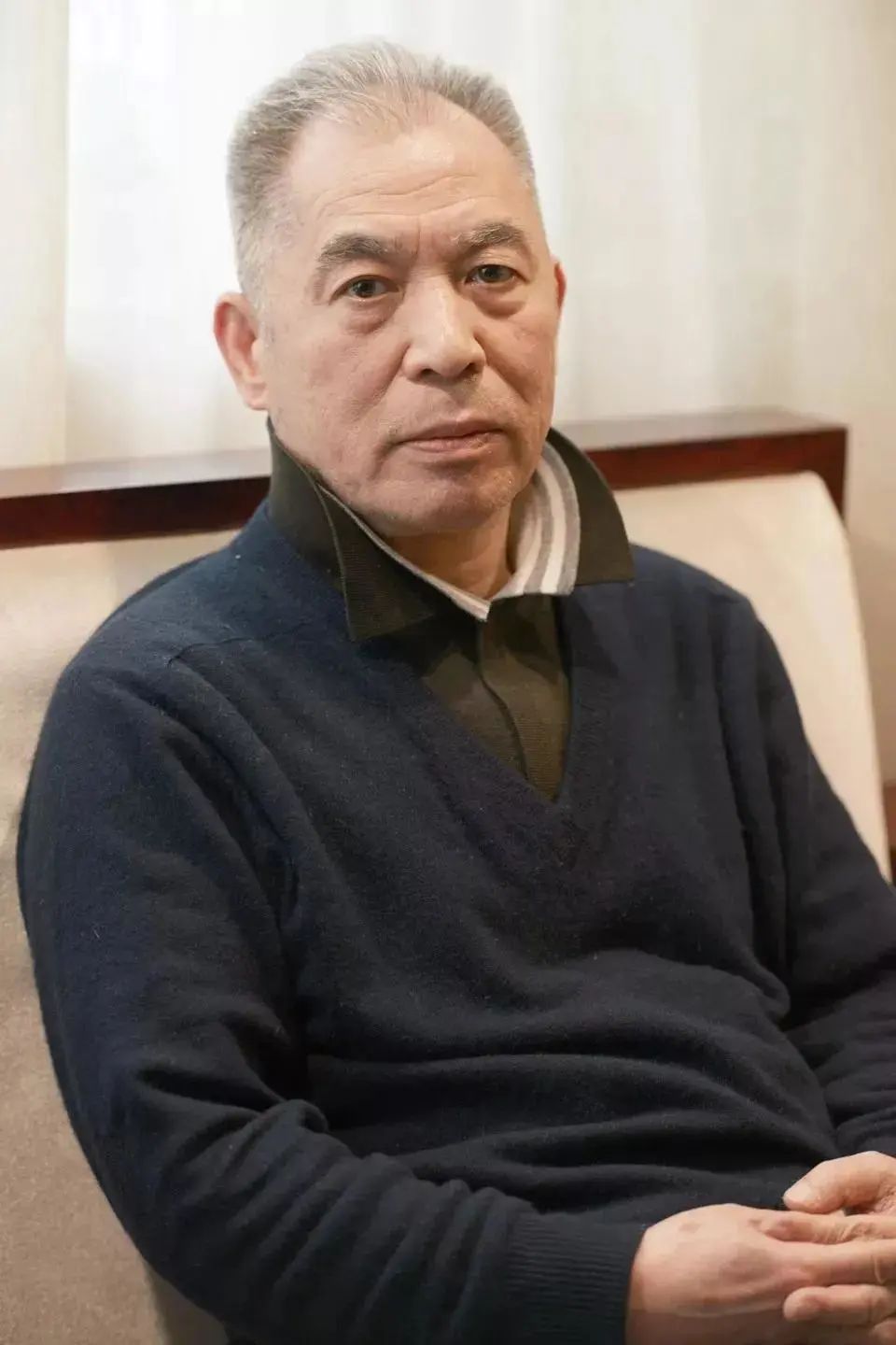 于是他自觉站到一侧。合影后,坐在苗先生旁边的椅子上了。