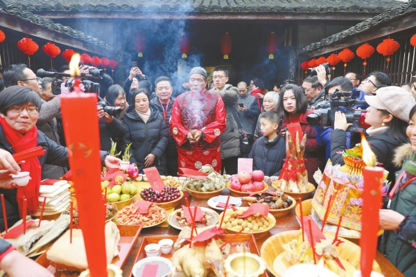 鲁迅外婆家景区还原的鲁迅笔下的“祝福”习俗场景。 浙江省绍兴市越城区孙端街道办事处供图