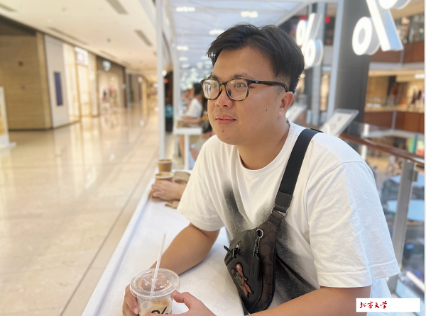 杨小宇在抻大一些照片的细节。他认真起来的样子还挺让邱洁安心。