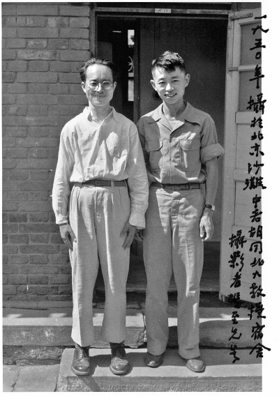 一九五〇年,沈从文(左)与黄永玉在北大教师宿舍留影,冯至摄影。