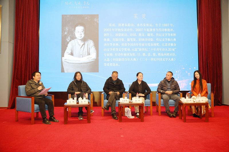 2023年度扬子江笔会以“经典、气质、多元——关于诗歌的几副面孔”为主题,活动由诗人、评论家茱萸主持,著名诗人、诗评家朱朱、于奎潮、李琦、傅元峰、语伞从各自角度展开对谈,对诗歌的多重面孔进行了多重呈现。