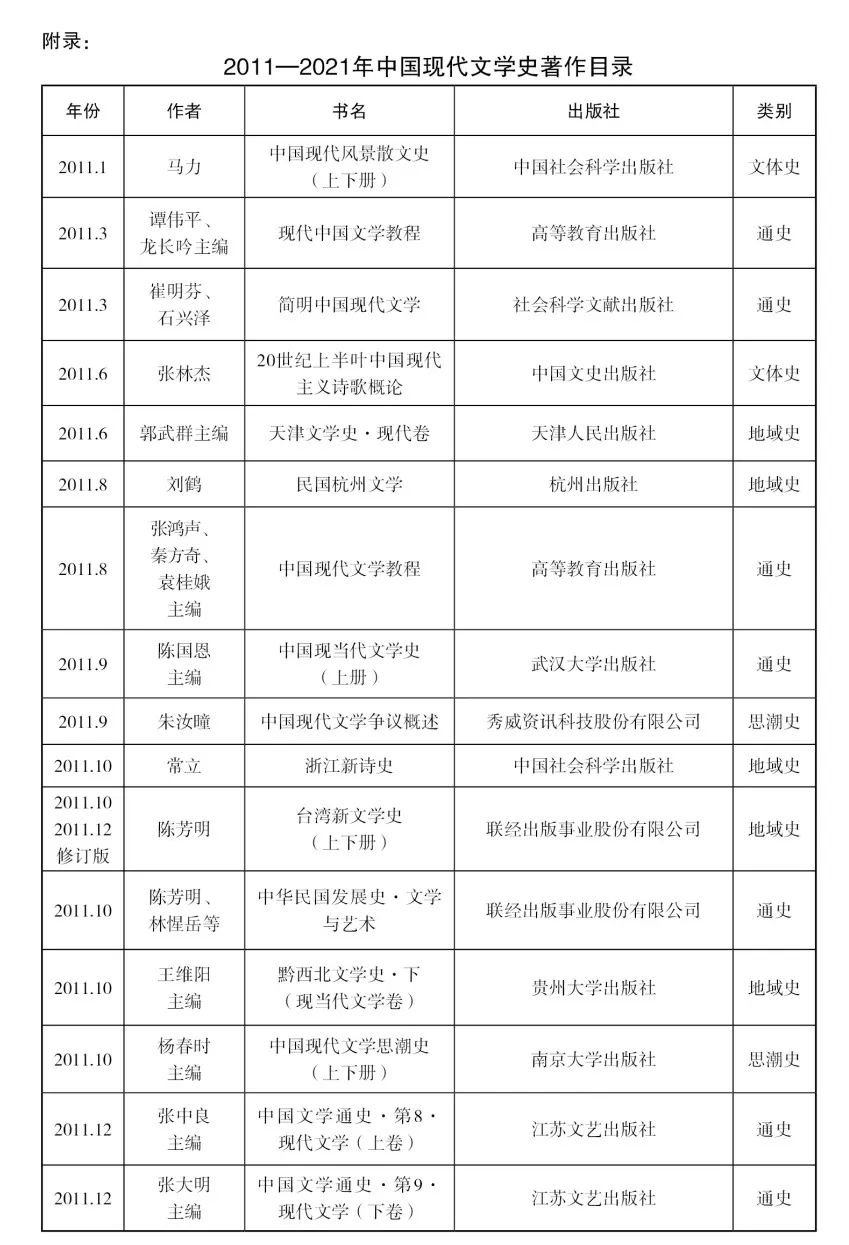 一 关于《2011—2021年中国现代文学史著作目录》辑录情况的说明