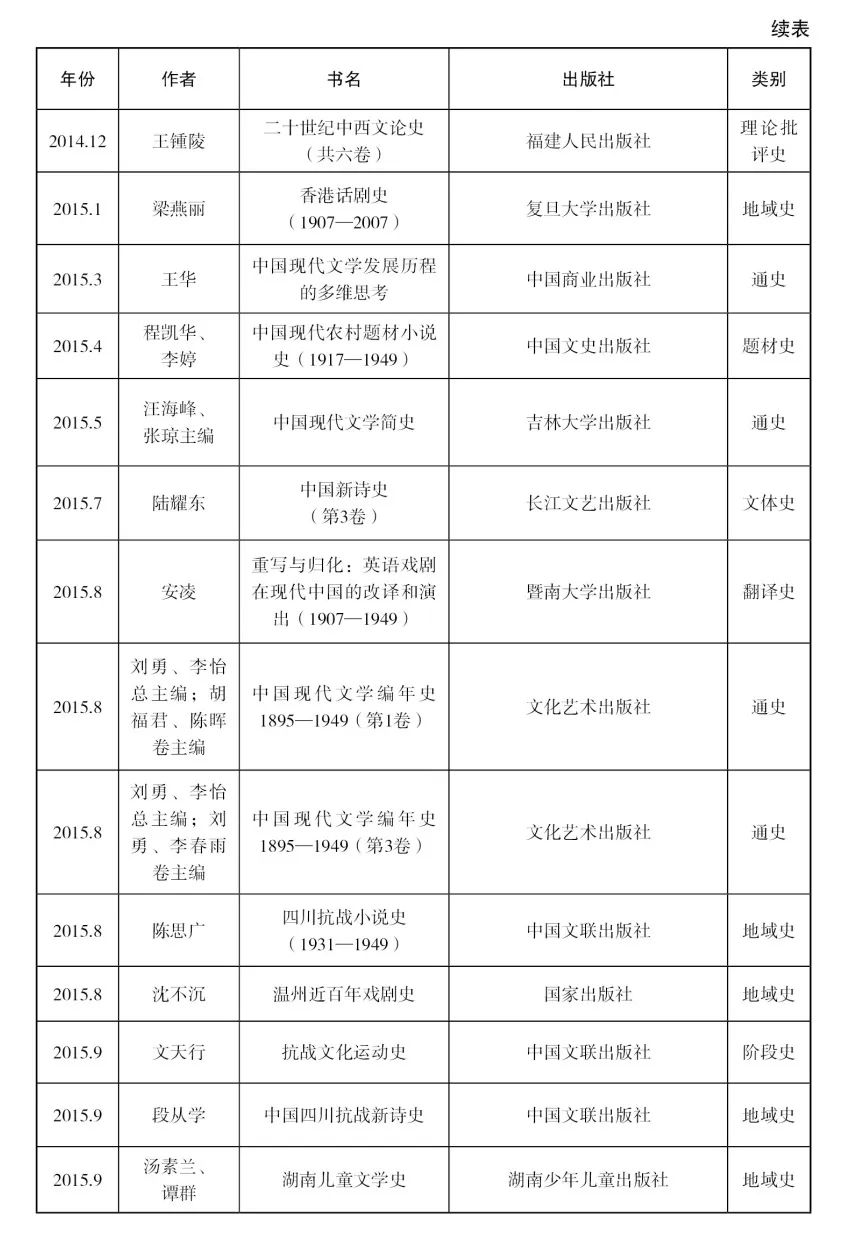 必须说明的是,一些研究著作之所以会被列入目录,唯一原因在于这些著作清晰地展现了某一类文学史研究对象的发展和流变,在研究的过程中凸显了“史”的脉络,因而也就多少具有了“文学史”的性质。[1]这与研究本身是否具有深度,并无任何关系。