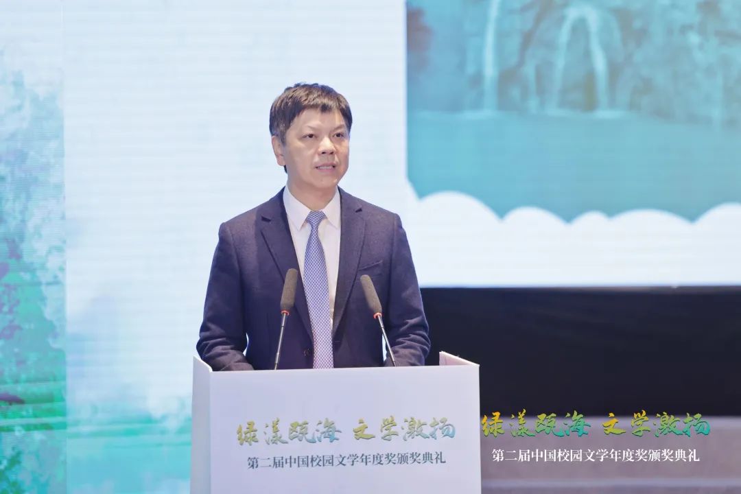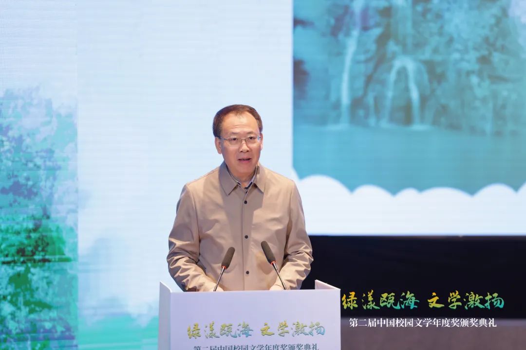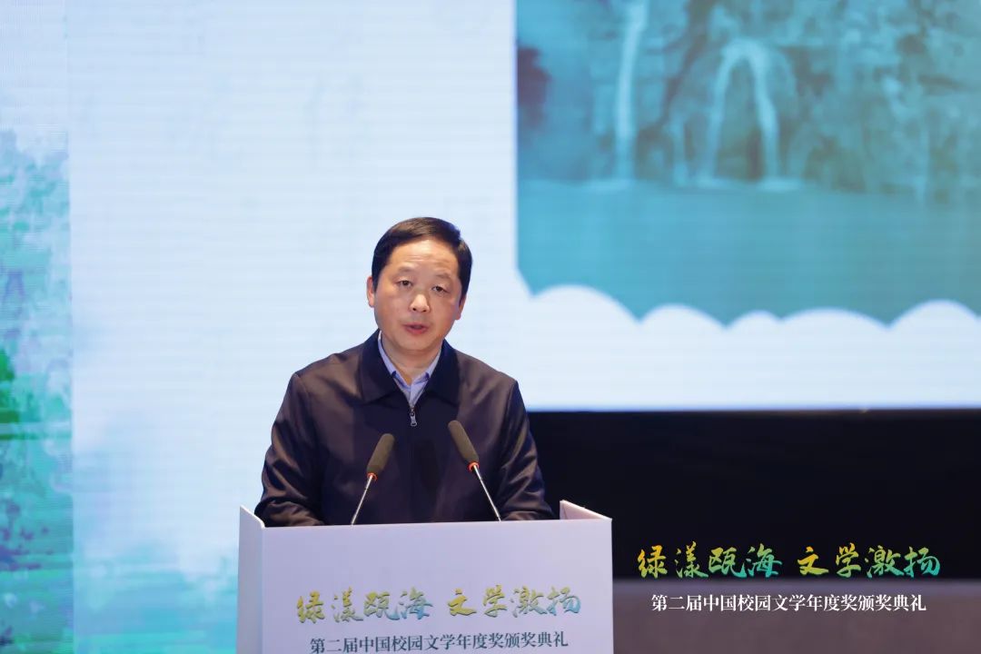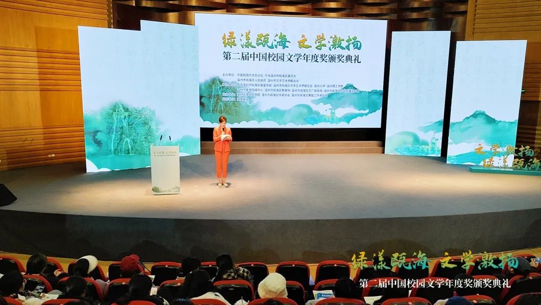文学的基石在校园,文学的未来在校园。颁奖现场,瓯海区委书记曾瑞华致辞表示:中国校园文学年度奖颁奖典礼,将校园文学与瓯海绿文化有机结合、全面融合,各位作家齐聚一堂、共话校园文学、共赏绿文化,必将为校园文学与绿文化发展增添浓墨重彩的一笔。我们也将以此为契机,持续推动校园文学与瓯海地域文化嫁接融合,深挖青灯市集美学、千年“吴田”商埠、肯恩别样风情等地域文化内涵,为每位作家创作校园故事、书写校园生活提供更优渥的创新土壤、更活跃的艺术源泉、更丰沛的想象空间。