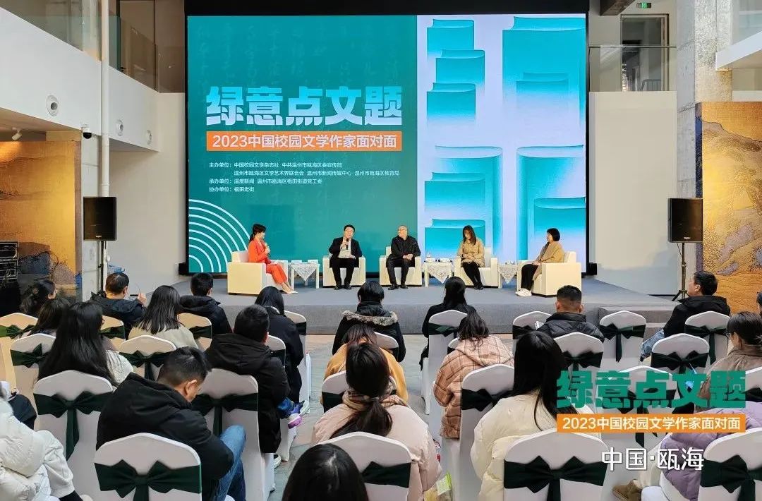 26日下午,“绿意点文题”2023中国校园文学作家面对面活动在梧田老街东瓯书院同步举行,中国作家协会社联部主任李晓东、浙江省作协副主席方卫平、《中国校园文学》主编徐峙、《中国作家》纪实版主任佟鑫、《黄河》主编黄风、作家陈武、《散文·海外版》 执行主编王燕、《少年文艺》执行主编吴丽丽、瓯海区文联副主席周吉敏以及获奖作家等参加本次论坛。本次论坛从朱自清的《绿》带来的文化影响力延伸讨论如何通过以生活体验与观察提升学生的文学素养,如何培养发现美及记录美的能力,如何通过文艺作品的深厚穿透力带动地方文化深耕及文旅协同发展。