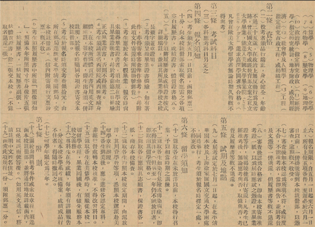 国立清华大学招考赴美留学专科生章程