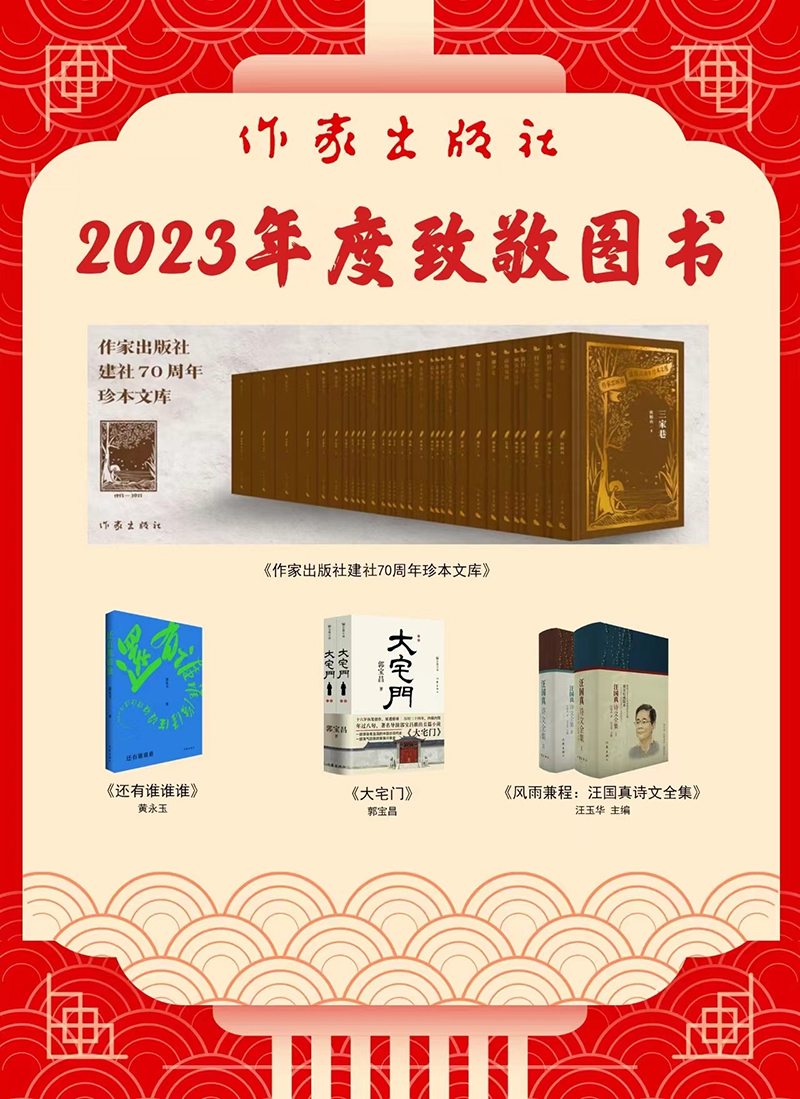 为总结年度重要出版动态,向经典作家作品感谢和敬意,此次作家出版社年度好书评选特别设立“年度致敬图书”,4部“年度致敬图书”分别为《作家出版社建社70周年珍本文库》、汪玉华《风雨兼程:汪国真诗文全集》、黄永玉《还有谁谁谁》、郭宝昌《大宅门》。