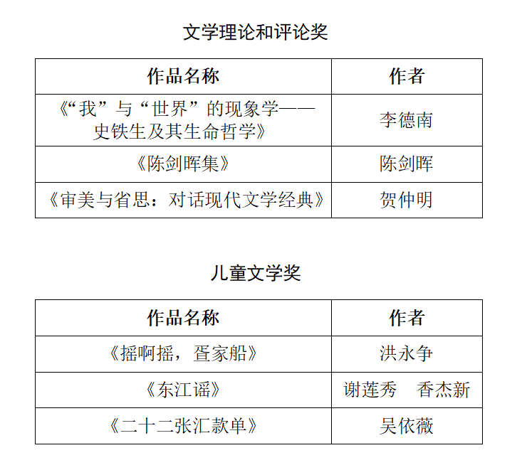 第十一届广东省鲁迅文学艺术奖(文学类)获奖作品名单