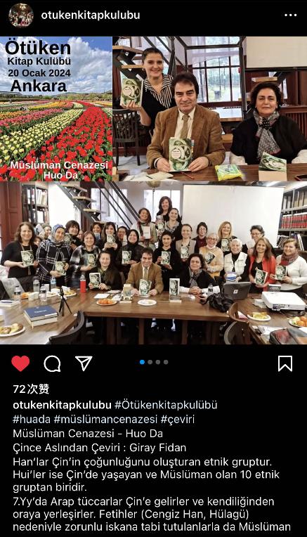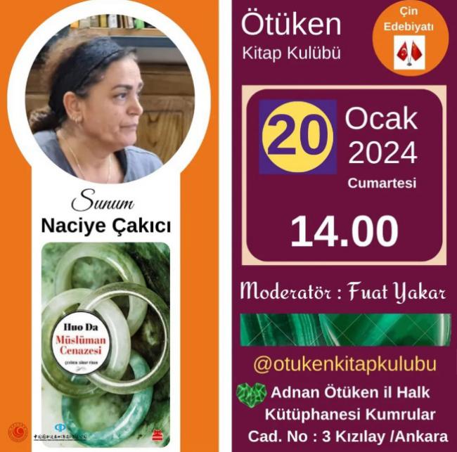 近日,由中国作家协会外联部指导,中国图书进出口(集团)有限公司和土耳其“中国文学读者俱乐部”联合土耳其于都斤 (Ötüken)读书俱乐部共同组织的《穆斯林的葬礼》读书分享会在土耳其成功举办。于都斤读书俱乐部负责人富阿特·亚卡尔、土耳其民俗学家纳齐耶·恰基奇作为嘉宾参加活动并围绕该书的文化背景、故事情节、哲学思想等进行分享。当地作家、文化艺术家和读者等共40多人参加了此次活动。