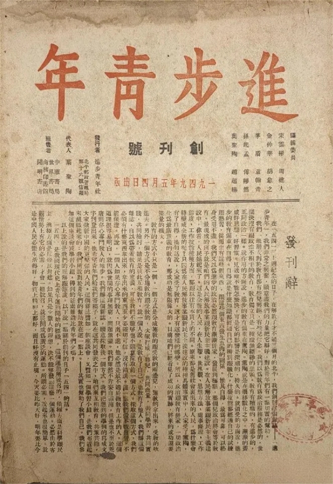 1949年5月4日,《进步青年》在北平正式发刊,发刊辞摘要如下: