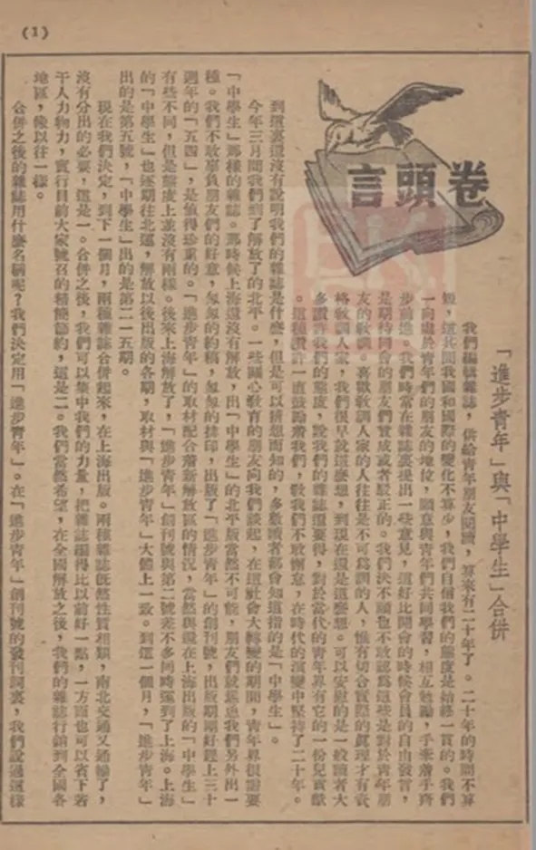 [40] 卢弓:《从〈中学生〉到〈进步青年》,《进步青年》1949年第218期。