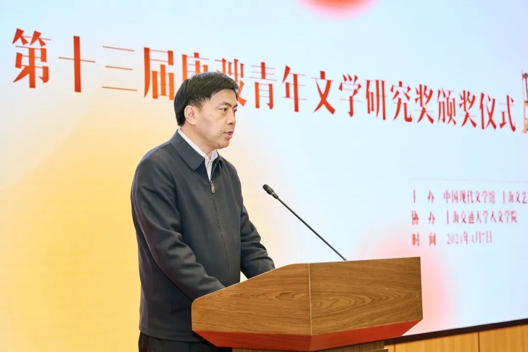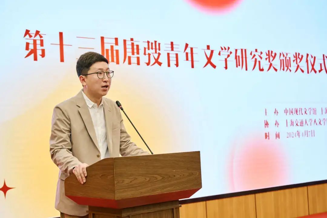 4月7日,由中国现代文学馆、上海文艺出版社主办,上海交通大学人文学院协办的第十三届唐弢青年文学研究奖颁奖仪式在上海举行。中国作协副主席、中国现代文学馆馆长李敬泽出席活动。上海市文联副主席、作协副主席孙甘露,上海世纪出版集团党委副书记、总裁阚宁辉,上海市作协党组书记、专职副主席马文运,上海交通大学人文学院院长吴俊,复旦大学教授郜元宝、倪伟,华东师范大学教授吕新雨、中文系主任文贵良,上海交通大学教授张全之、张先飞,中国现代文学馆副馆长李宏伟,上海市委宣传部出版处处长毛小曼,上海文艺出版社社长、总编辑毕胜以及30余位来自全国各地的学界代表参加活动。活动由中国现代文学馆常务副馆长王军主持。