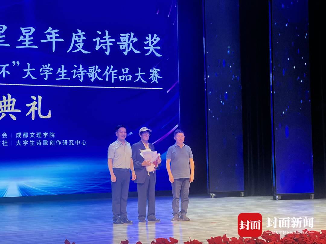 站在领奖台上,周所同心情激动,此次站在“星星年度诗歌奖”的领奖台上,是他1988年获得《诗刊》社首届全国诗歌大奖赛第一等金杯奖36年之后,再次站在领奖舞台上。“在平淡漫长的岁月里,突然有意外惊喜的光芒照在我的身上,这就是星星,我一直仰望的星空。能接受星星的照耀,对于一个年逾古稀之人,一个边缘写作者来说,实在是莫大的荣幸。真心感谢你们把如此重大重要的奖项颁给我。”