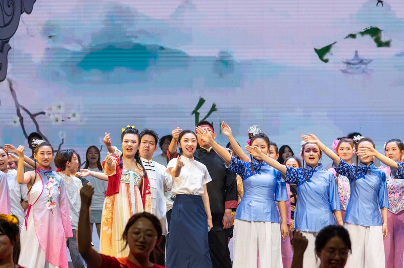 论坛前的6月12日晚,举行了“龙腾东方”幻想戏曲晚会,全场观众跟随张冉的科幻叙事视角,置身于时空隧道,领略“戏曲+科幻”的味道。晚会在科幻文学为基础的故事中,以戏曲、曲艺及山西民间地域元素营设未来幻想之境,将东方文化图腾“龙”作为舞台视觉意象载体,节目涵盖鼓舞、群口快板、京剧、相声、戏歌等多种表演形式,激发了同学们对传统文化和科幻结合的热爱。