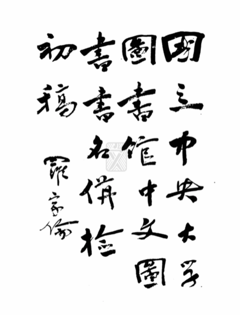 罗家伦题“国立中央大学图书馆中文图书书名备检初稿”