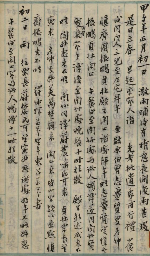 日记之于龙沅这样的小人物有如此重要的意义,不仅在于它可以为其在名人日记中挣得位置,留下历史想象的空间。更在于它还实在地修补个体的生命史。在龙氏家族文献中,龙沅的叔叔龙绂慈(1888-1945)的稿本日记显得尤为关键。龙绂慈这份并不漫长的日记记载了侄女龙沅的早期生活。如1924年正月初一,龙绂慈收到谭光和龙沅的夫妻联名贺年柬,也收到龙沅的家书。