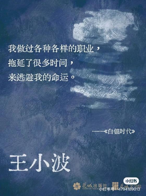 王小波是中国富有创造性的作家之一。他的作品富于想象力之余,不乏理性精神。《白银时代》《革命时代的爱情》 《2015》《绿毛水怪》等作品均首发于《花城》杂志。